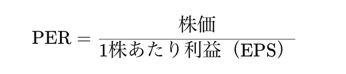 PER(株価収益率 / Price Earnings Ratio)とは、株価が企業の「1株あたり利益(EPS:Earnings Per Share)」の何倍になっているかを示す指標です。主に、株価が収益力に対して割高か割安かを測る参考として利用されます。以下の計算式で算出されます。